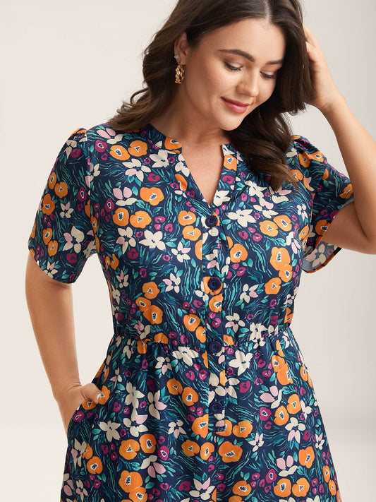 Abstract Floral Print Button Jumpsuit