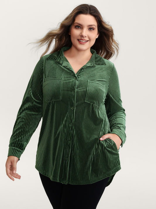 Velvet Shirred Bodice Stretchy Waist Blouse