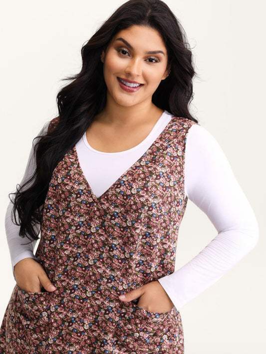 Velvety Thick Fabric Patch Pocket Midi Dress