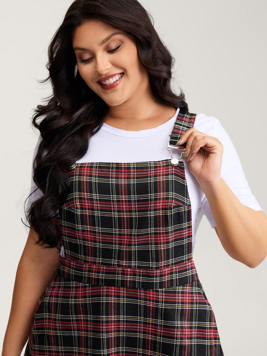 Checkered Pattern Overall Pockets Midi Dress