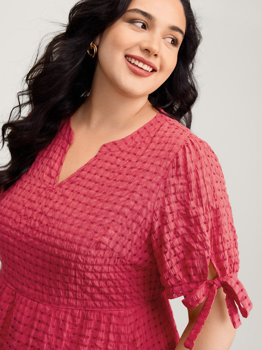 Check Textured Knot Sleeve Knee-Length Dress