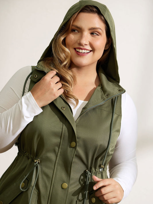Channel-Drawstring Pockets Hooded Vest