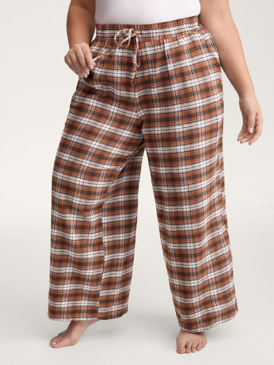 Checkered Print Drawstring Wide-Leg Lounge Pants