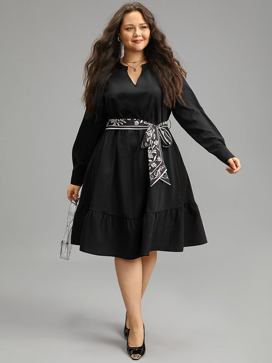 Anti-Wrinkle Floral Print Belted Notched Dress