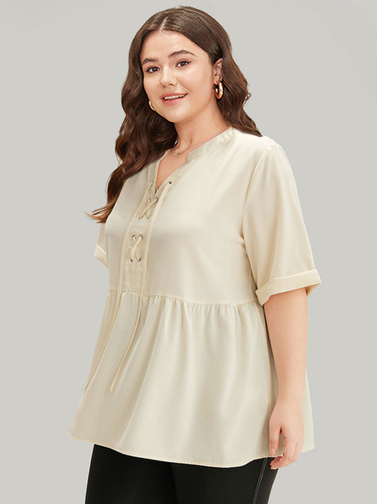 Anti-Wrinkle Lace Up Notched Gathered Blouse