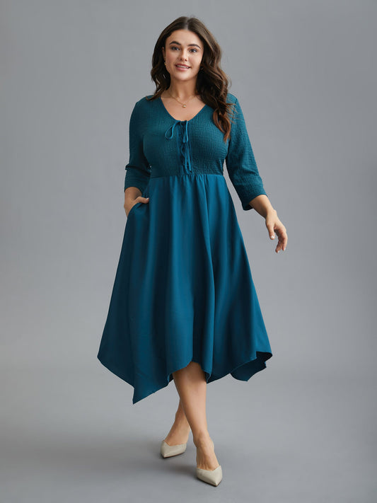 Adjustable Drawstring Asymmetrical Hem Textured Dress