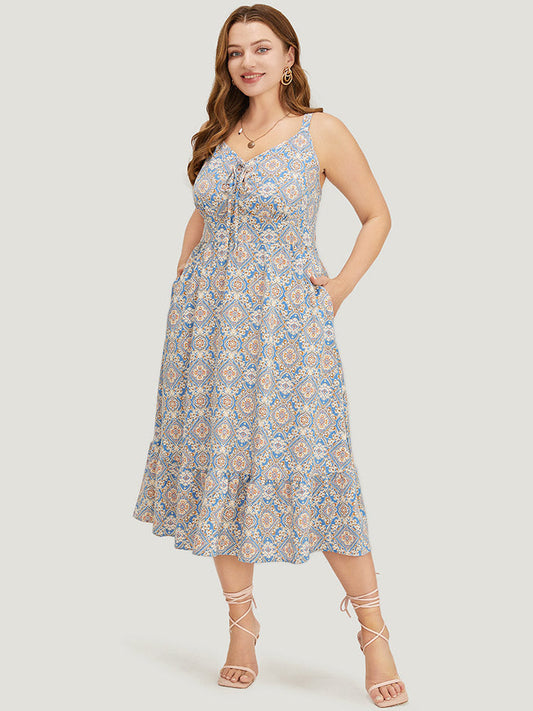 Bandana Knotted Pocket Ruffle Hem Empire Waist Cami Dress
