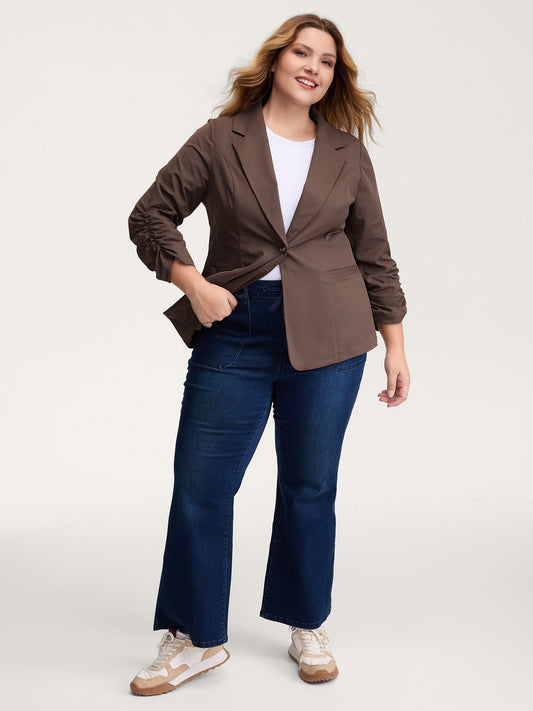 Notched Lapels Gathered Sleeve Blazer