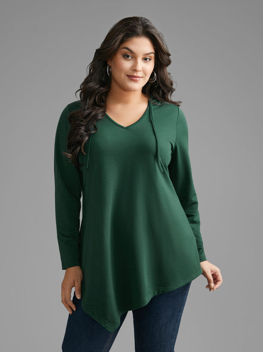 Hooded Drawstring Asymmetrical Hem Sweatshirt