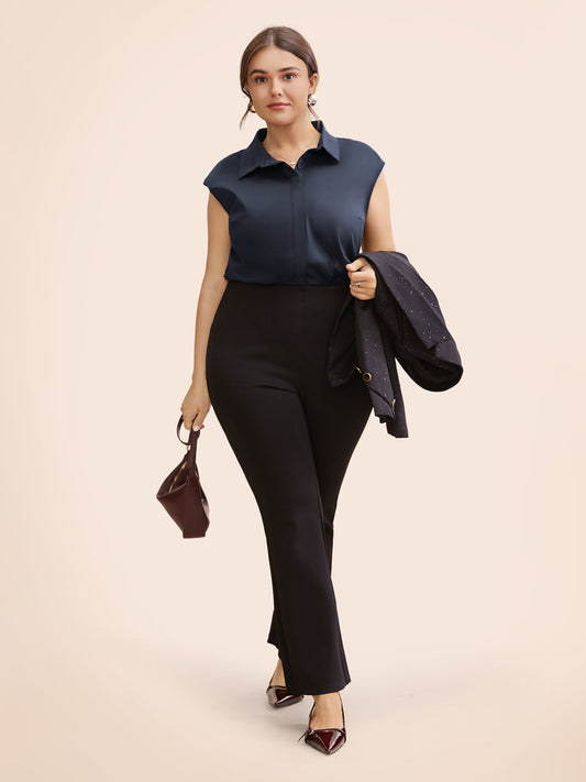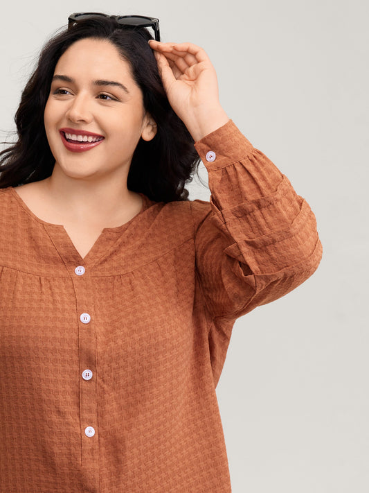 Anti-Wrinkle Solid Shirt Collar Lantern Sleeve Button Up Blouse