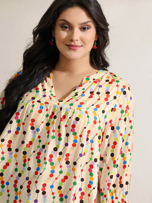 Colorful Polka Dots Rayon Notched Collar Blouse
