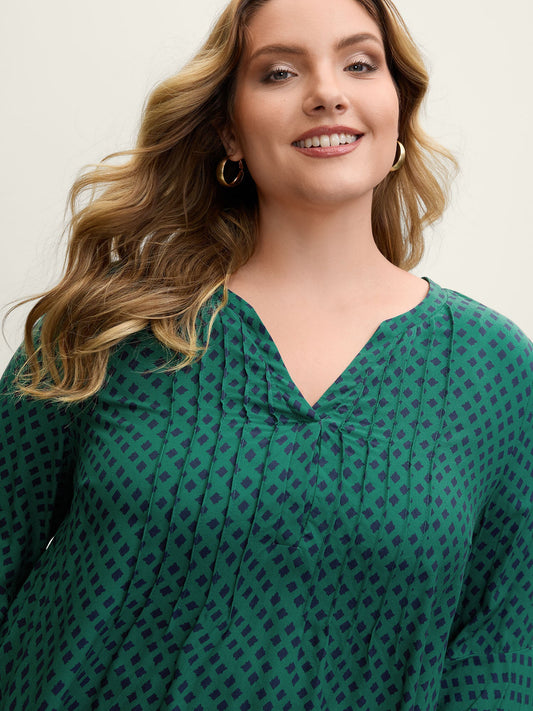 Ruffled Neckline Colorful Geometric Rayon Blouse