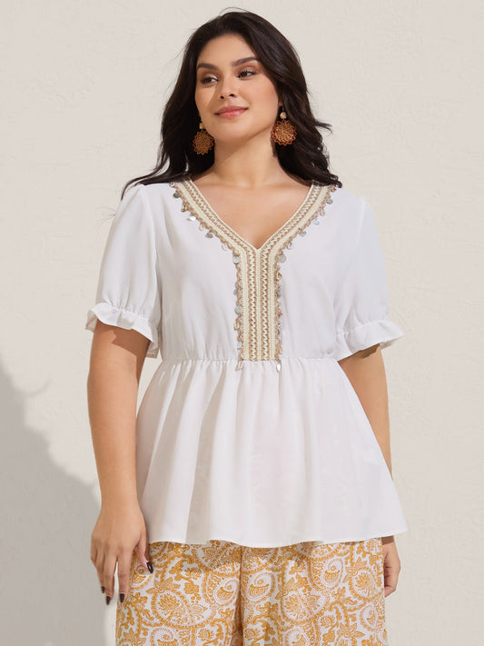 SAVE 60%Sheer V-Neck Tie Tiered Blouse