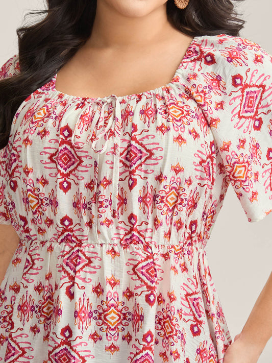 SAVE 40%Geometric Print Ribbon Collar Blouse
