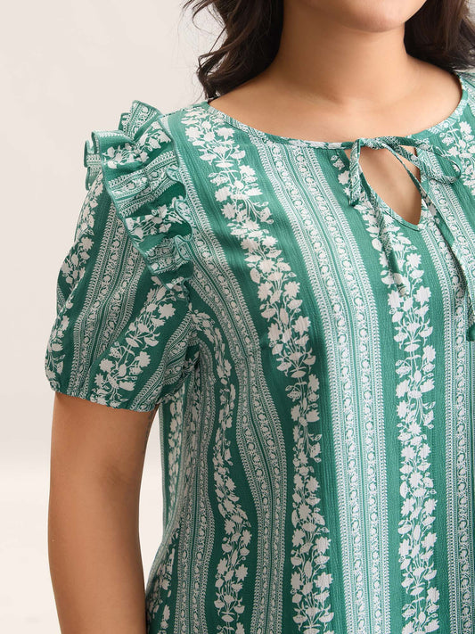 Floral Print Ruffled Detail Sleeve Blouse