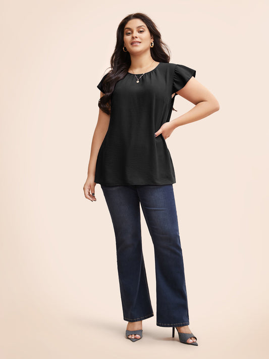SAVE 50%Solid Gathered Flutter Trim Blouse