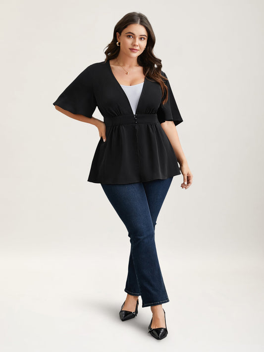Lace Sheer Flared Sleeve V-Neck Blouse