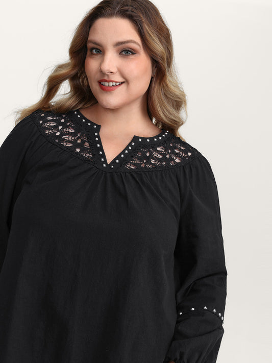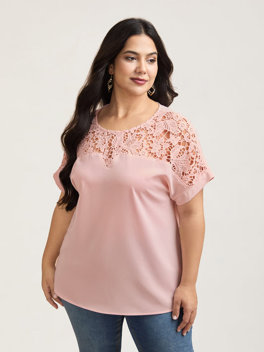 SAVE 60%Sheer Lace Neck Half Sleeve Shirt