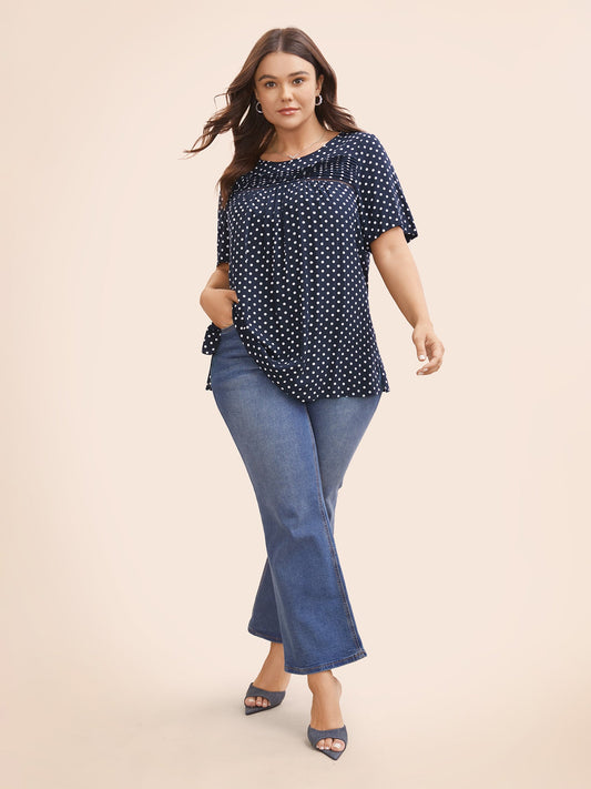SAVE 60%Polka Dot Split Hem Pleated Blouse