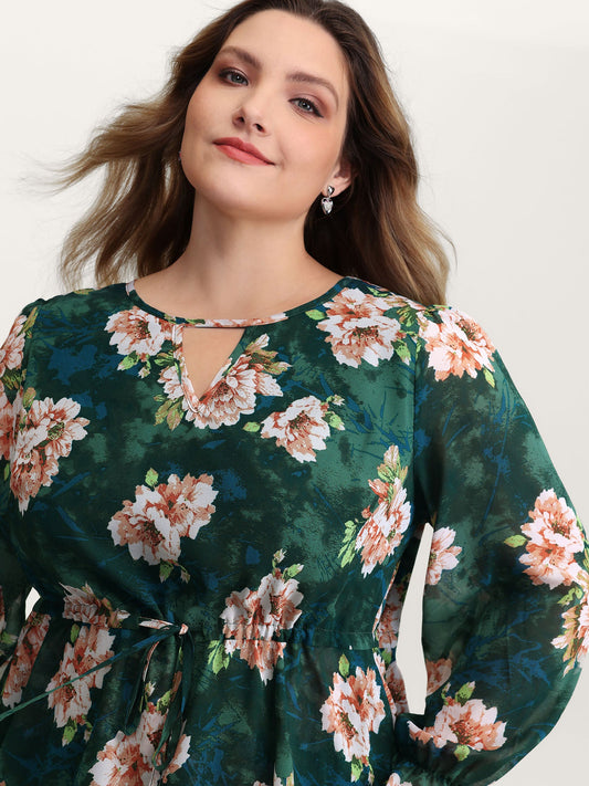 Floral Lantern Sleeve Shirred Mock Neck Blouse