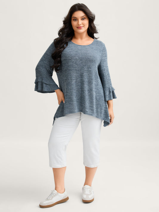 • Stretchy Heather Layered Ruffle Sleeve T-Shirt