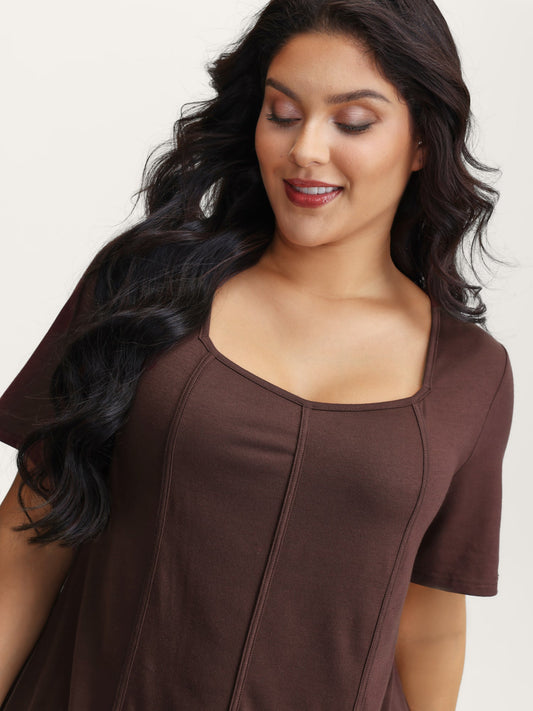 Stretchy Defining Waist Deep Neckline T-Shirt