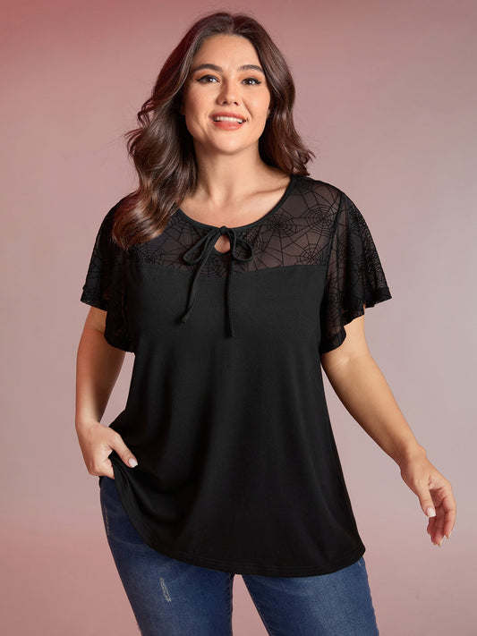 • Spiderweb Cut-Out Neckline Fitted T-Shirt