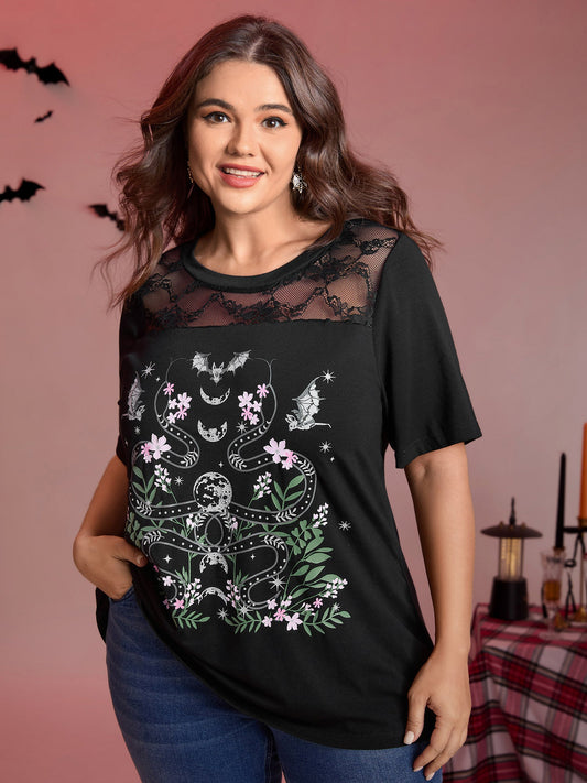 • Midnight Garden Sheer Lace Trim T-Shirt