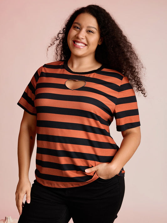 Pumpkin Patch Stripe Heart Cut-Out T-Shirt