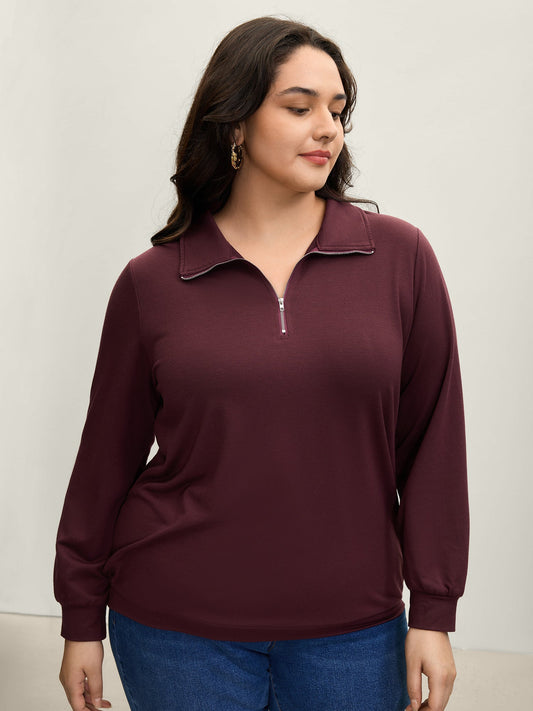 Half Zipper Adjustable Solid Sweatshirt
