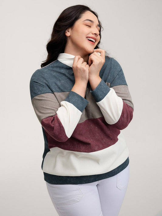 Color Stripes Half-Zipper Sweatshirt