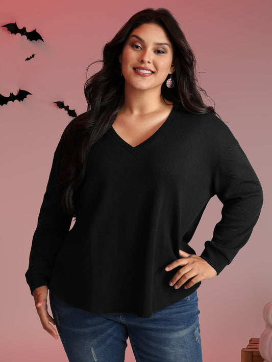 Solid Ruched Batwing Sleeve Shirred Hem T-shirt