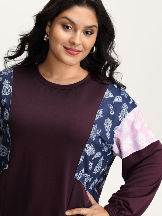 Floral Print Contrast Relaxed-Fit Sweatshirt