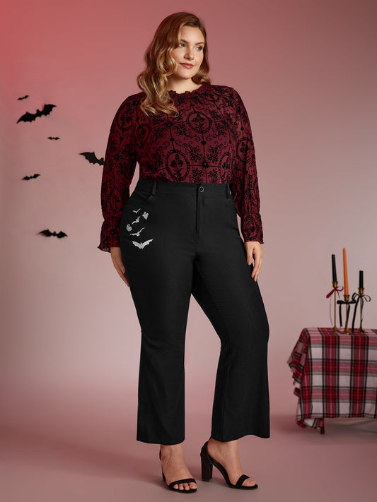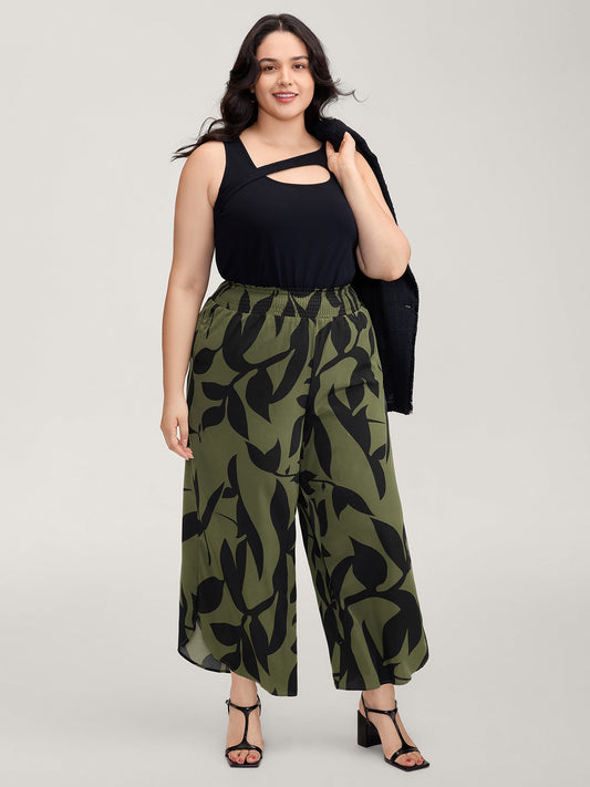 Silhouette Floral Print Drawstring Wide-Leg Pants