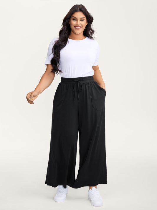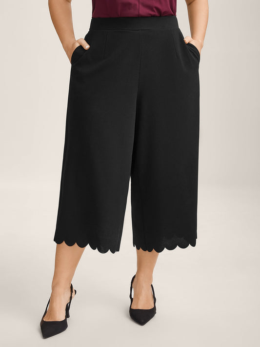 SAVE 30%Scalloped Hem Wide-Leg Solid Pants