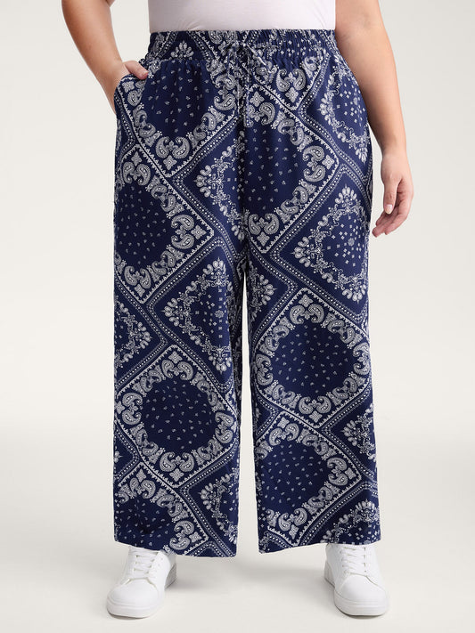Floral Print Wide-Leg Drawstring Pants