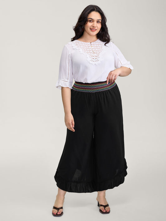 Colorful Shirred Waistband Ruffled Hem Pants