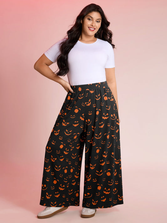 Carved Pumpkin Halloween Wide-Leg Pants