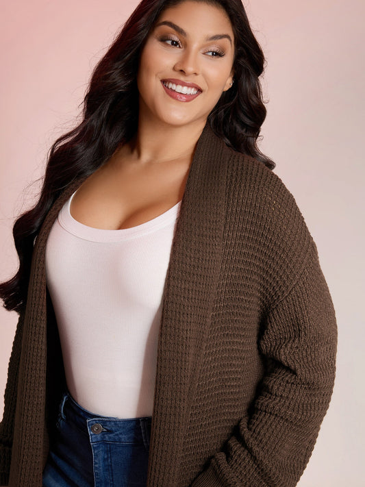 Folded Collar Textured Open-Front Knit Cardigan