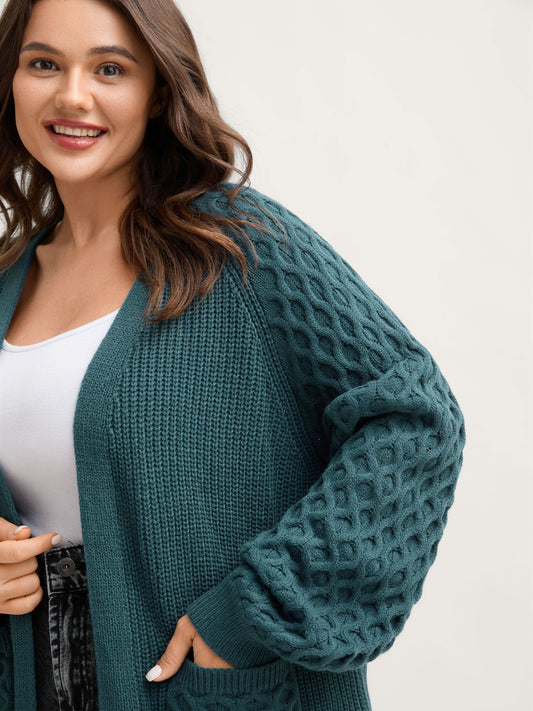 Textured Balloon Sleeve Pockets Knit Cardigan