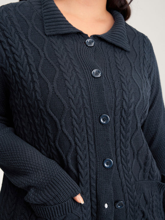 Mixed Texture Cable Stitch Pockets Knit Cardigan
