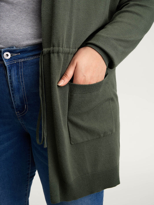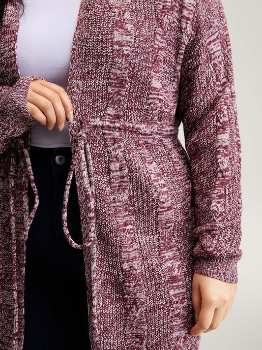 Hooded Drawstring Waist Pockets Knit Cardigan