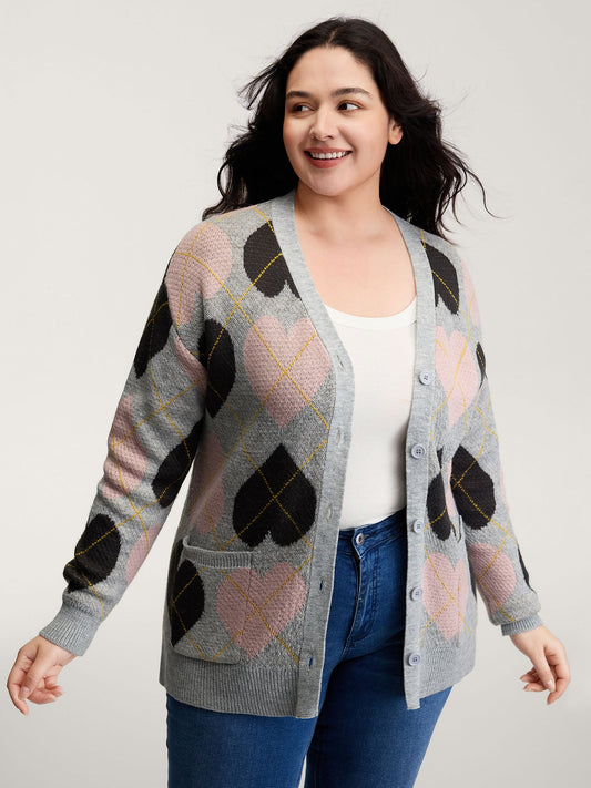 Cozy Hearts Jacquard Pattern Pockets Knit Cardigan