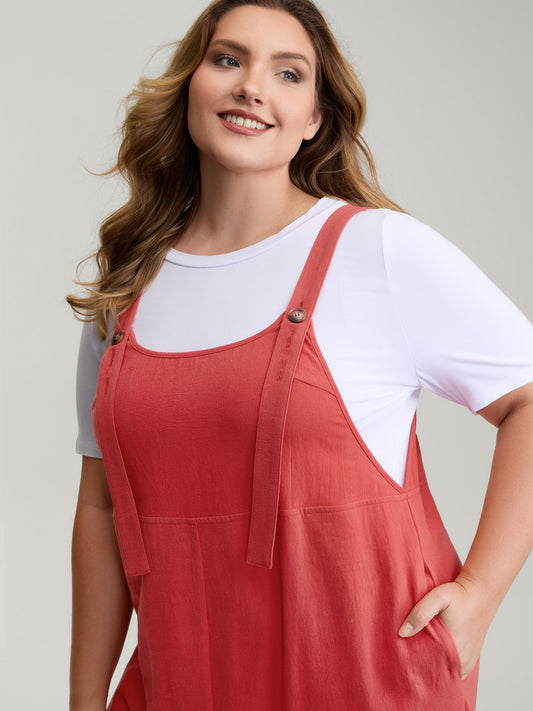 Pure Cotton Cuffed Hem Stretchy Waist Jumpsuit