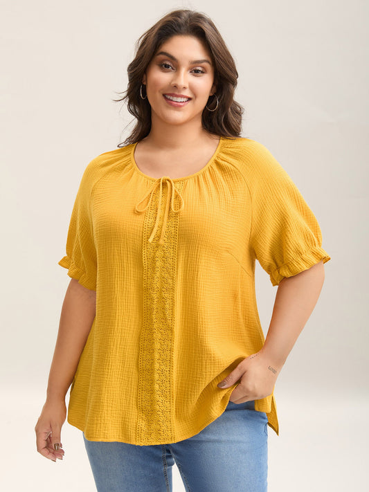 Cotton Embroidery Waist-Tie Straight-Fit Shorts