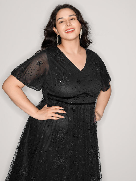Shimmery Sequin Sheer Zipper Midi Dress