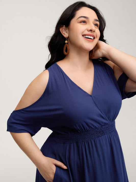 Sleeve Cut-Out Shirred Waist Maxi Dress