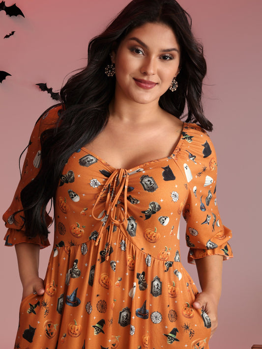 Timeless Halloween Print Stretchy Waist Sleep Dress