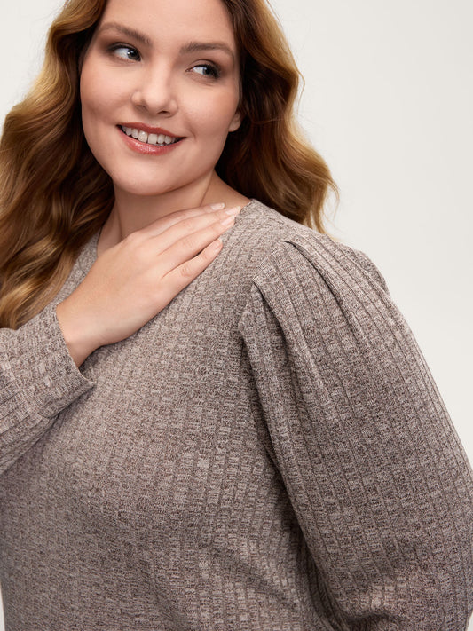 Ribbed Puffy Sleeve Knee-Length Sweater Dress