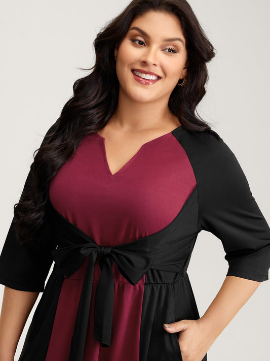 Plaid Pattern Contrast Waist-Tie Midi Dress